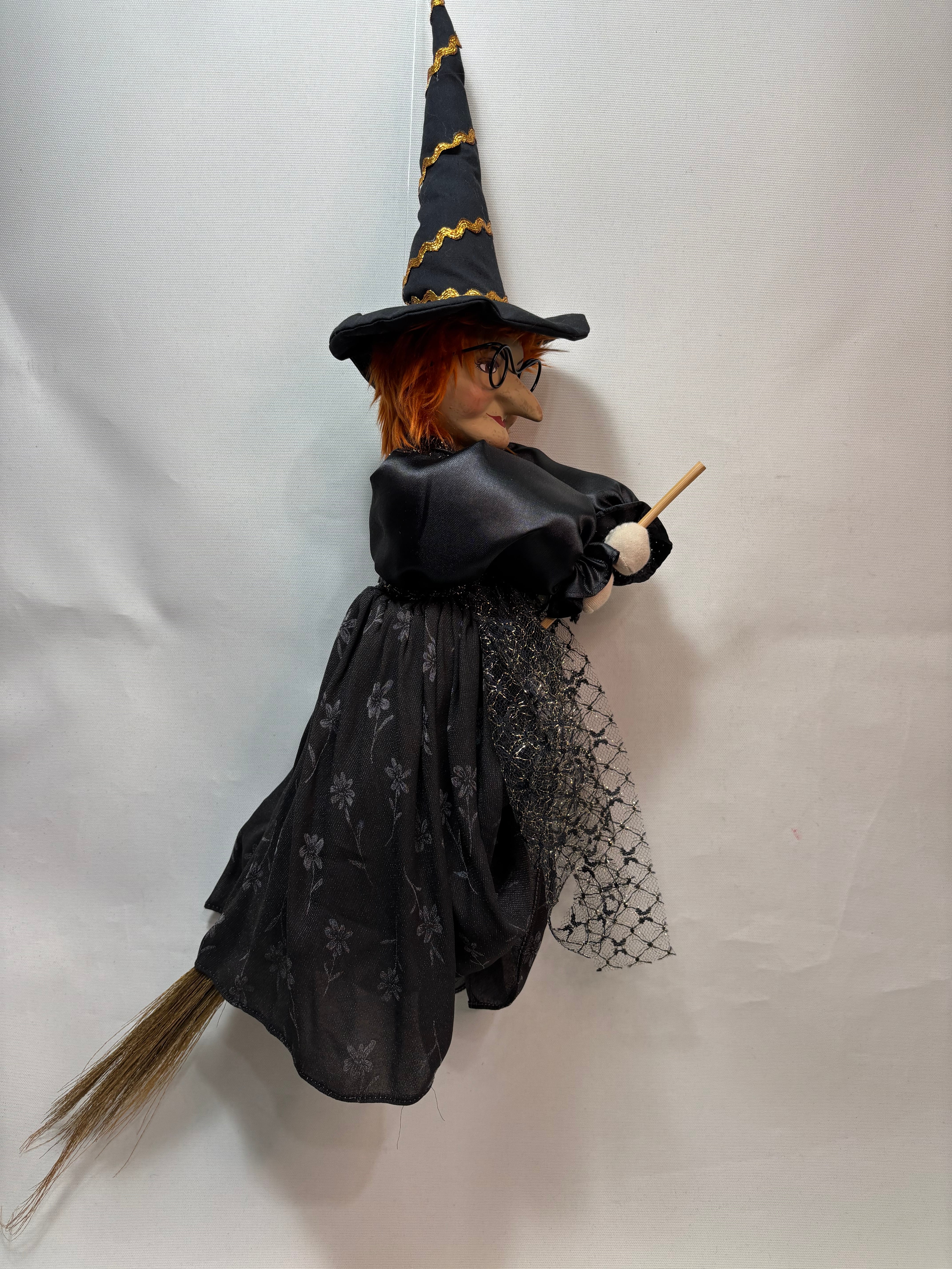 箒にまたがるお願い魔女人形。