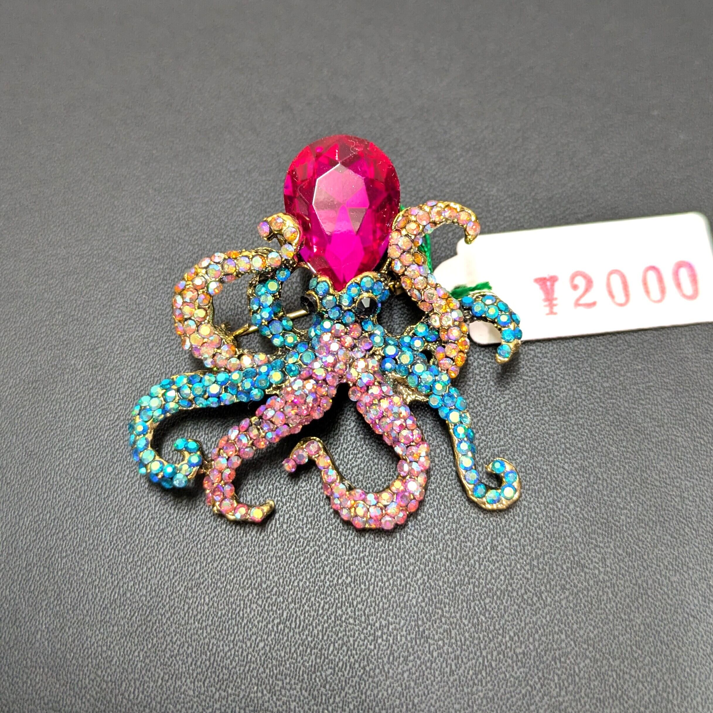 - タコをモチーフにしたこのブローチは、大きめのサイズ感が特徴です。色とりどりのデザインは、シンプルな服装にもアクセントを与え、会話のきっかけになること間違いなしです。ユニークな存在感で、周囲の視線を集めるアイテムです。