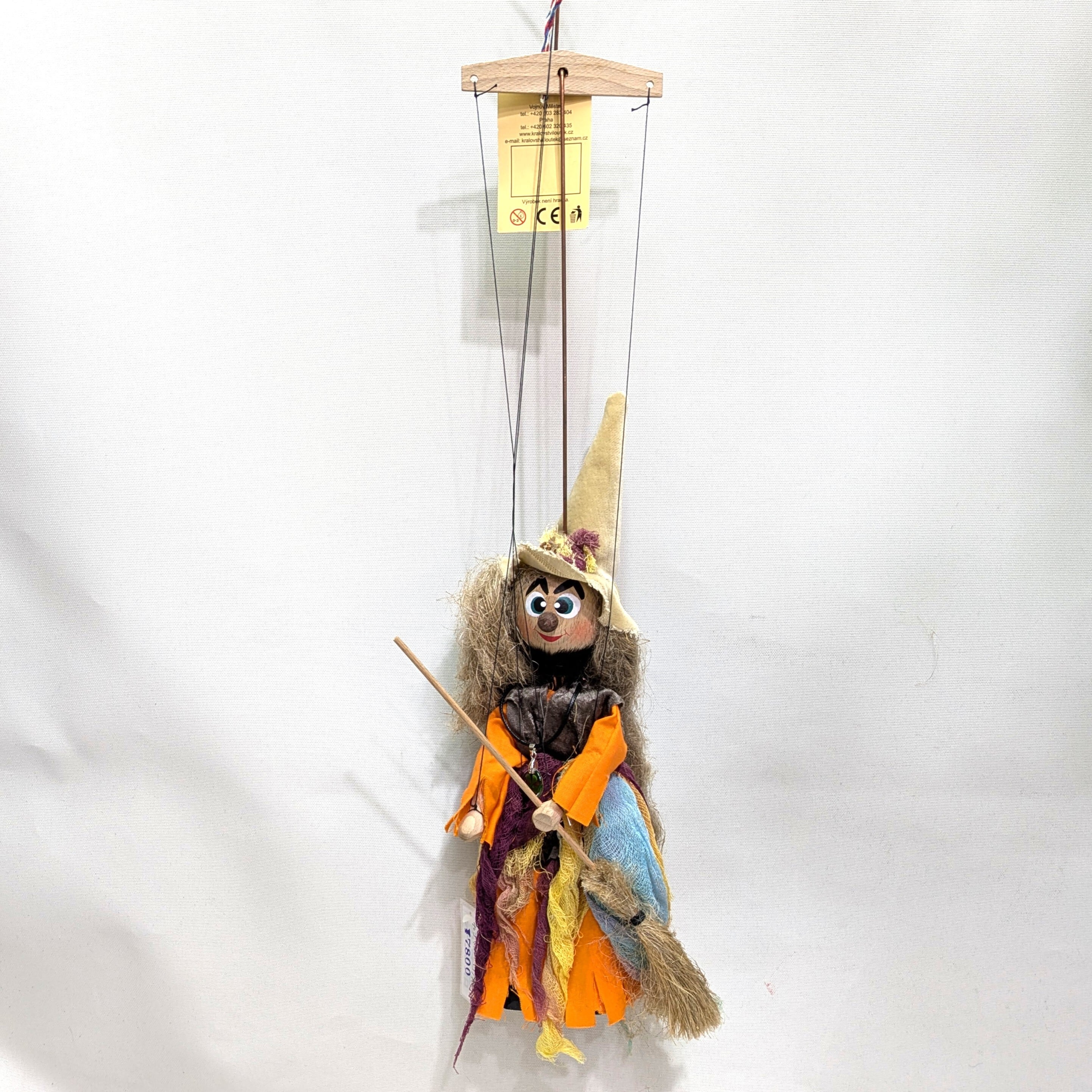 魔女の姿をしたチェコ製のマリオネット、ピノキオのような親しみやすさを感じさせる逸品です!